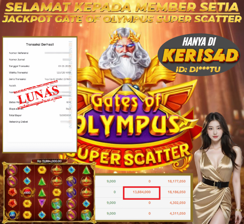 KERIS4D dikenal sebagai situs terpercaya yang selalu menghadirkan pengalaman bermain slot online yang aman, fair, dan berlisensi resmi. Di sini, kami tidak hanya sekadar memberikan janji, tapi bukti nyata berupa slip kemenangan yang dapat Anda lihat secara langsung.