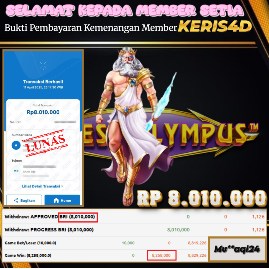 JACKPOT SLOT GACOR MAIN GATES OF OLYMPUS 11 APRIL 2025, Kemenangan Slot, Bukti Kemenangan Slot, Kemenangan Slot Pragmatic Play, Menang Slot online, Slot Gacor, Situs Aman Terpercaya, WD Berapapun Pasti DI Bayar Tuntas, Maxwin Slot Online.