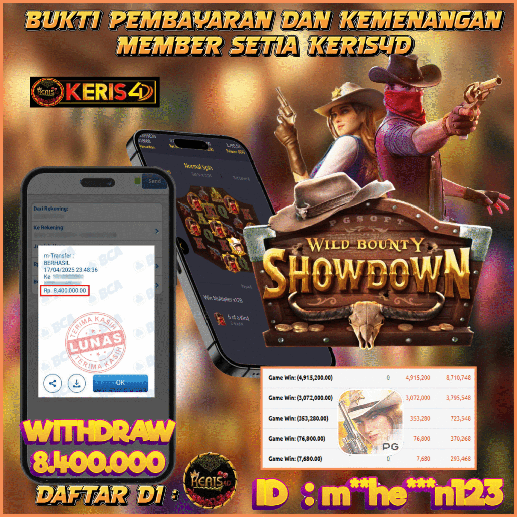 KERIS4D dikenal sebagai situs terpercaya yang selalu menghadirkan pengalaman bermain slot online yang aman, fair, dan berlisensi resmi. Di sini, kami tidak hanya sekadar memberikan janji, tapi bukti nyata berupa slip kemenangan yang dapat Anda lihat secara langsung.