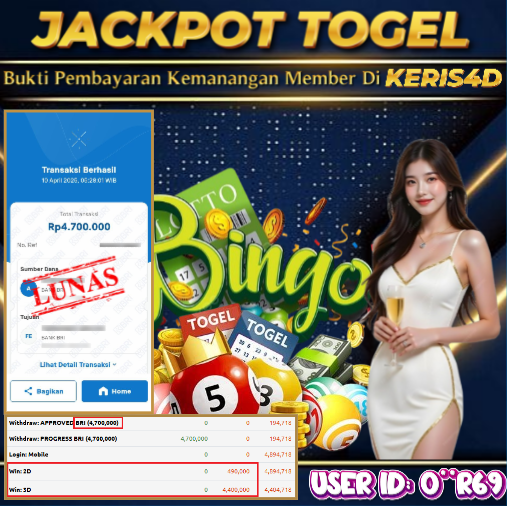 KERIS4D dikenal sebagai situs terpercaya yang selalu menghadirkan pengalaman bermain slot online yang aman, fair, dan berlisensi resmi. Di sini, kami tidak hanya sekadar memberikan janji, tapi bukti nyata berupa slip kemenangan yang dapat Anda lihat secara langsung.